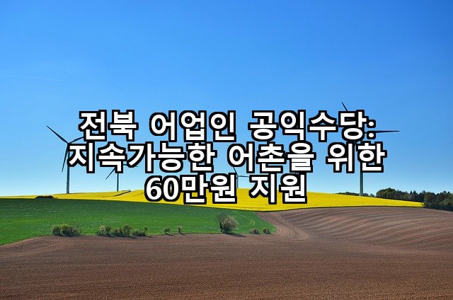 안녕하세요, 독자 여러분! 오늘은 전북특별자치도 어촌의 미래를 밝히고 어업인의 땀방울에 정당한 가치를 부여하는 중요한 정책, 바로 ‘수산업 어촌 공익적 가치 지원금’에 대해 깊이 있게 다루고자 합니다. 이 제도는 단순히 지원금을 넘어, 우리 바다와 어촌의 지속가능성을 지키는 데 기여하는 어업인의 노력을 인정하고 보상하는 의미 있는 발걸음입니다. 수산업과 어촌은 식량 공급원으로서의 기능뿐만 아니라, 해양 생태계 보전, 수산자원 … 더 읽기